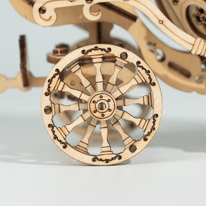 Pumpkin Cart is inspired by fairy tales and it is an elaborately-designed pumpkin cart model. With the insertion design, it can be assembled in 1.5 hours without gluing. After finishing assembly, it can be used as a decoration at home.